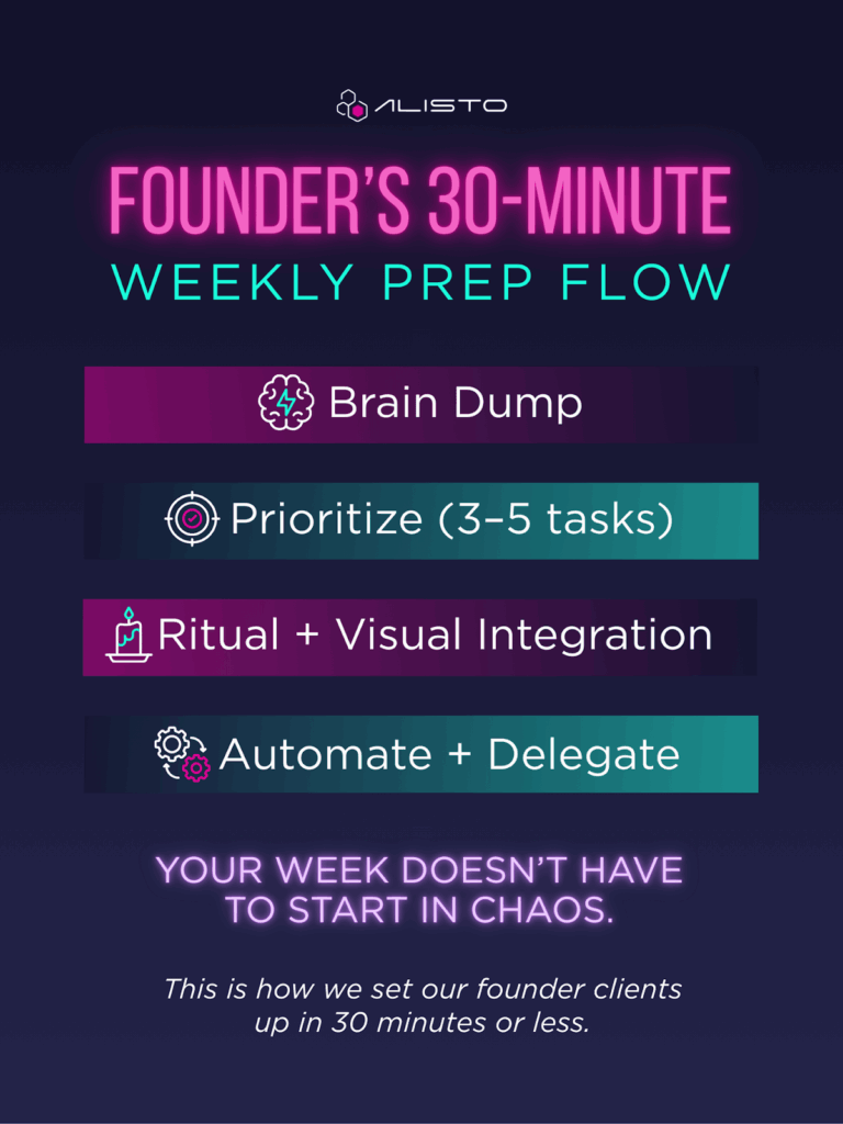 This post walks you through how Alisto preps your founder rhythm each week with clarity, rhythm, and focus, so your energy fuels progress, not distraction.